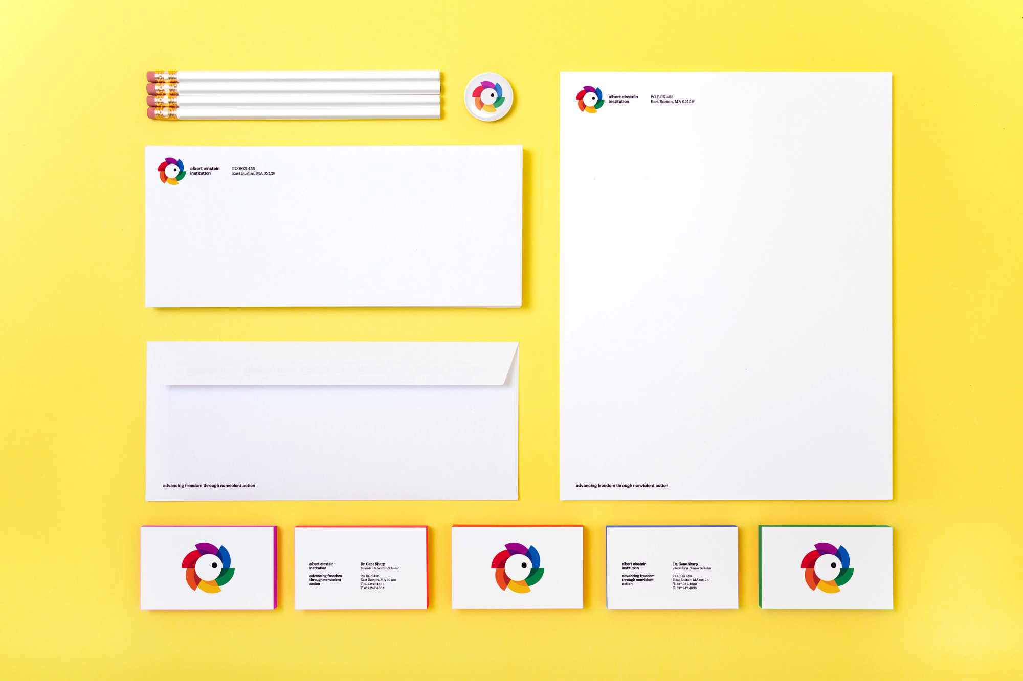 We created a new identity for AEI that highlights the power of individuals and their ability to affect change through nonviolent methods. The mark and guidance was adopted to bring the work, research, and influence of Gene Sharp and the organization into broader public recognition and dialogue.
